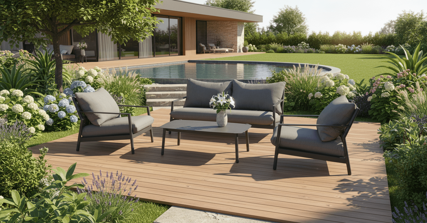Ontdek tuinmeubelen die naadloos aansluiten bij deze tuinstijl