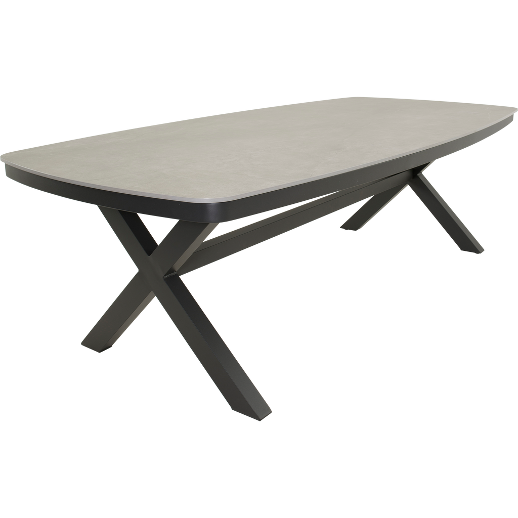 De Lesli Living Davos deens ovaal tuintafel is gemaakt van gepoedercoat aluminium en is afgewerkt met een sintered stone tafelblad. Het sintered stone tafelblad geeft een luxe uitstraling aan de tafel.