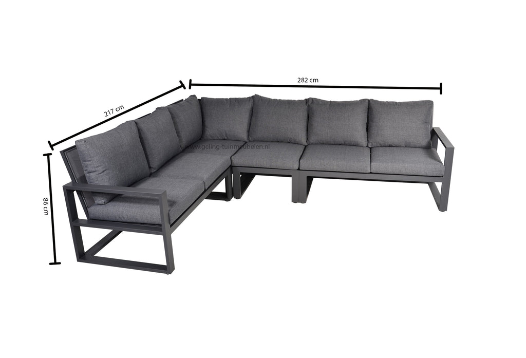 De Lesli Living Pina Colada Loungehoek is een moderne Loungehoek. Deze loungehoek is gemaakt van gepoedercoat aluminium in de kleur antraciet. Deze loungehoek leveren wij met goed gevulde zit- en rugkussens, de kussens zijn afritsbaar en koud te wassen.