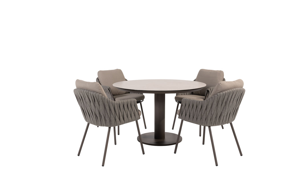 Taste 4SO Cannes terre - Sarah is een moderne diningset voor op uw terras. Deze diningset bestaat uit aluminium diningstoel cannes terrre met een prachtige afwerking van rope. De tuintafel sarah heeft een aluminium onderstel en het tafelblad is gemaakt van glas met geprint keramiek voor een moderne uitstraling.