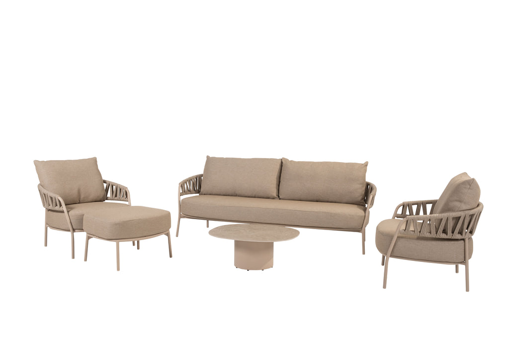 De Taste by 4 Seasons Outdoor Loungeset Calma is een comfortabele Loungeset. Deze loungeset is voorzien van een aluminium onderstel met een rope afwerking. Deze loungeset leveren wij met luxe gevulde zit- en rugkussens, de kussens zijn afritsbaar en koud te wassen. De kussens zijn gemaakt van hoogwaardige kwaliteit. De loungetafels zijn gemaakt van aluminium in de kleur latte met een keramiek tafelblad.