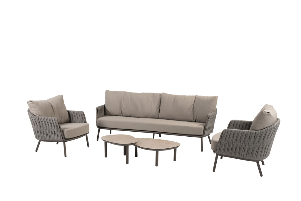 De Taste by 4 Seasons Outdoor Loungeset Cannes is een comfortabele Loungeset. Deze loungeset is gemaakt van een aluminium onderstel met een rope afwerking. Deze loungeset leveren wij met luxe gevulde zit- en rugkussens, de kussens zijn afritsbaar en koud te wassen. De kussens zijn gemaakt van hoogwaardige kwaliteit. De monroe loungetafel set bestaat uit een set van twee loungetafels. De loungetafels zijn gemaakt van aluminium in de kleur terre met een keramiek print tafelblad.